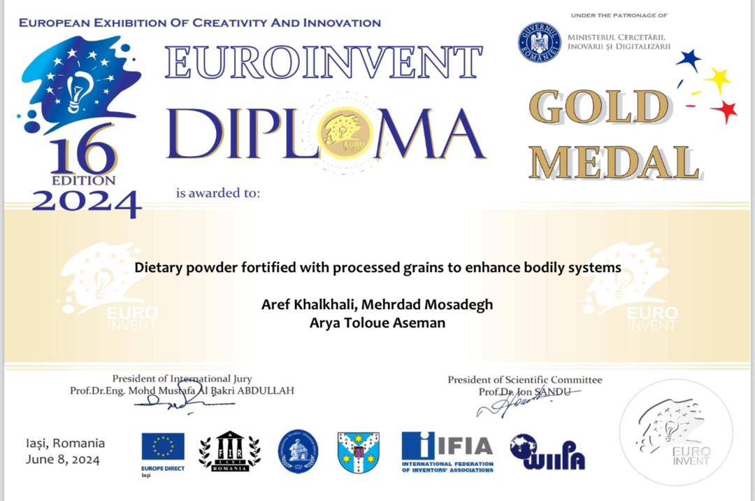 اختراع پودر غذایی تقویتکننده سیستمهای بدن با فرآوری غلات” به شماره ثبت اختراع ۹۹۱۷۲، در داخل کشور و با انجام کارآزماییهای بالینی در بیمارستانهای سینای همدان و امام خمینی تهران و چاپ مقالات معتبر در مجلات علمی جهان .مورد توجه مجامع معتبر علمی خارجی قرار گرفت و بیش از ۶۰ ایمیل از کنفرانس های مهم و علمی دنیا به دست این تیم رسیده است.